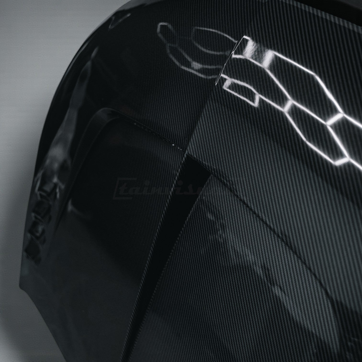 Made from twill weave wet carbon fibre, finished in 2k uv and petrol resistant clear coat.